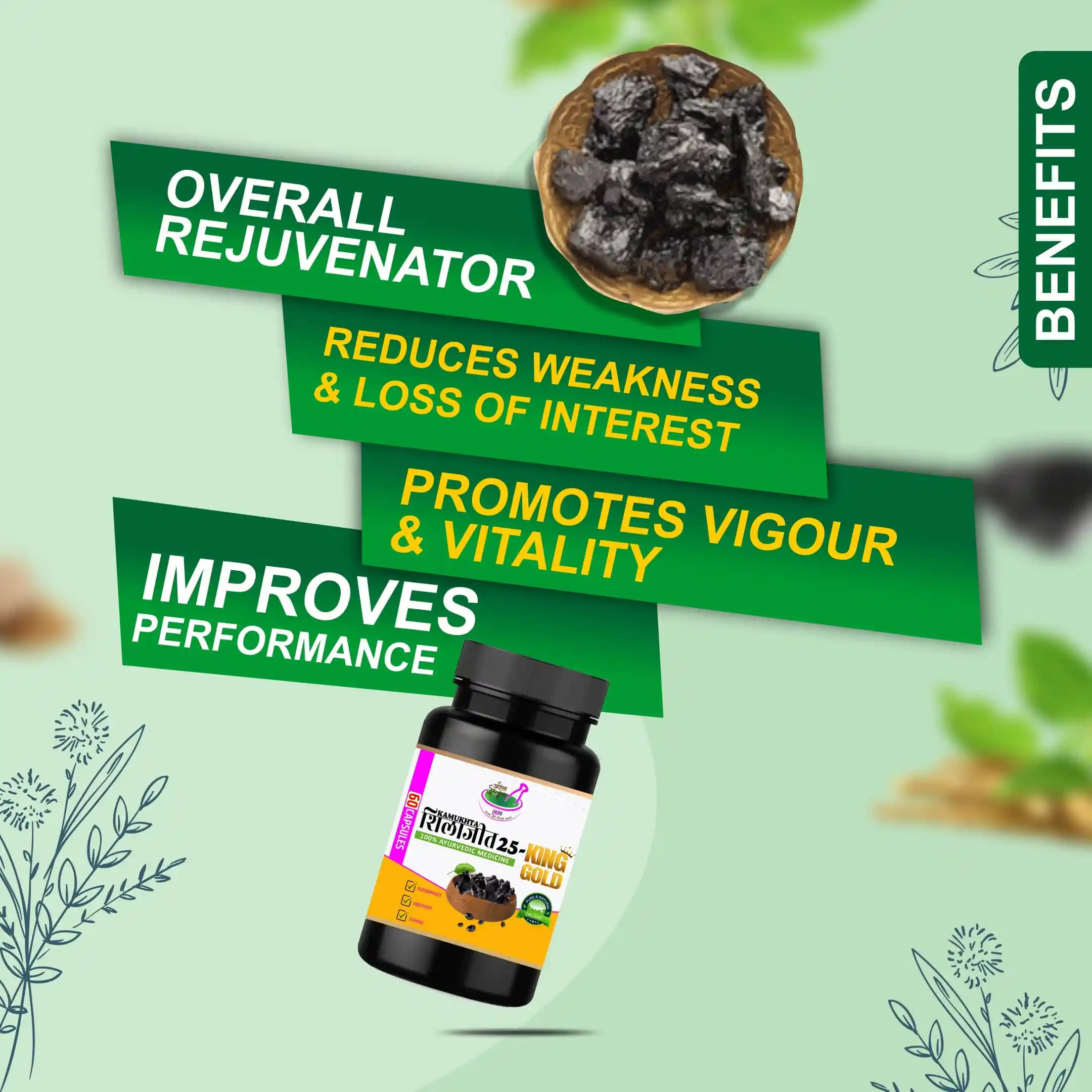 1. Silajit: Rich in essential minerals, vitamins, and organic compounds, Shilajit serves as a potent source of vitality, fostering energy levels and combatting fatigue.